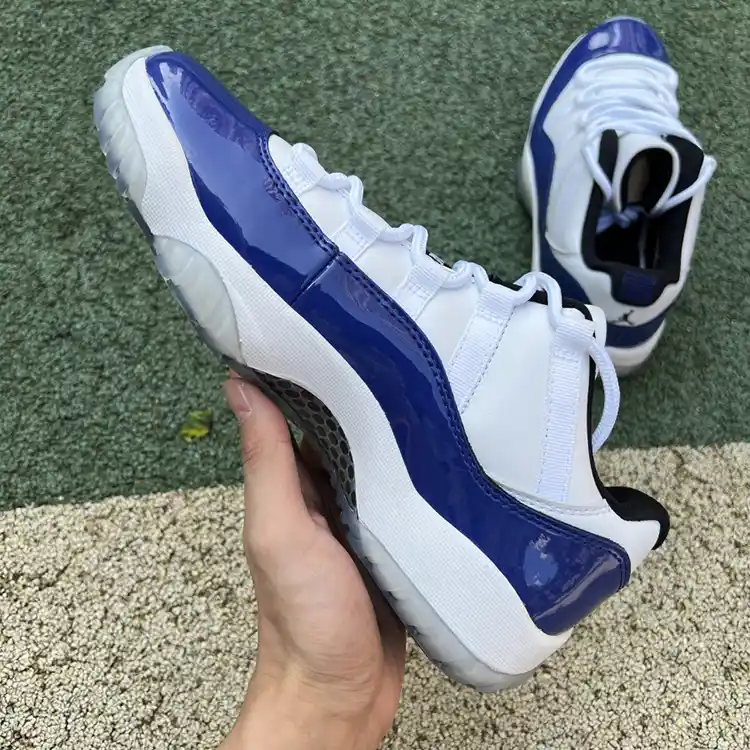 The Air Jordan 11 Low “White Blue Concord” is a perfect balance of style and function. The combination of crisp white with bold blue patent leather delivers a standout look that can elevate any outfit, while the low-top design makes it versatile enough for everyday wear. Whether you’re looking to make a statement on the court or step out in style, these sneakers offer the best of both worlds—iconic Jordan heritage and modern comfort.