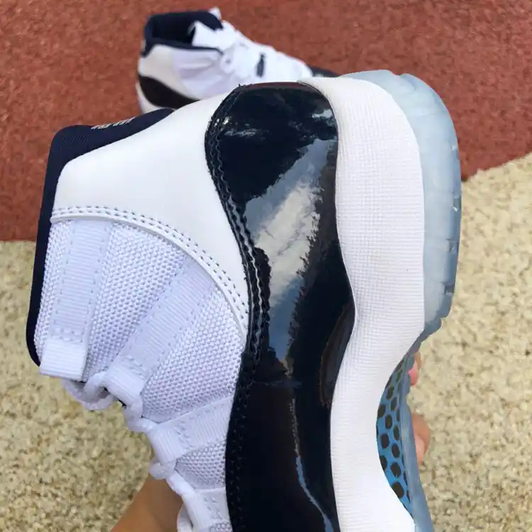 The Air Jordan 11 “Midnight Navy” is a sleek and elegant take on one of the most iconic Jordan silhouettes. With its deep navy patent leather mudguard, crisp white mesh upper, and subtle Carolina blue accents, this high-top sneaker delivers a perfect combination of style and performance. Inspired by Michael Jordan’s college days at the University of North Carolina (UNC), this AJ11 features a timeless design that appeals to both basketball fans and sneaker enthusiasts. The translucent outsole and high-gloss finish add a luxurious touch, making these shoes a versatile option for any occasion.