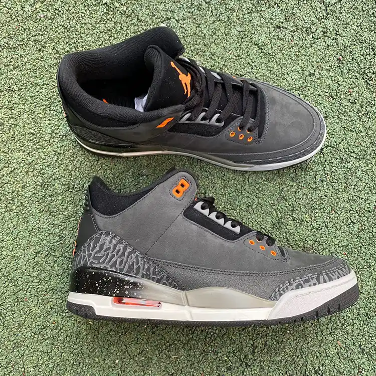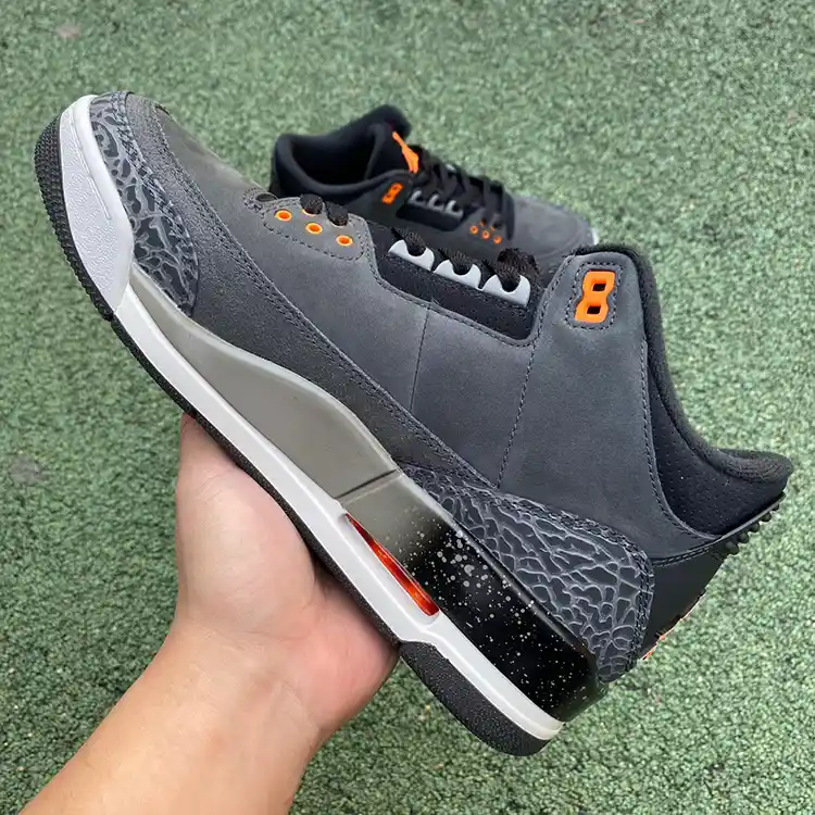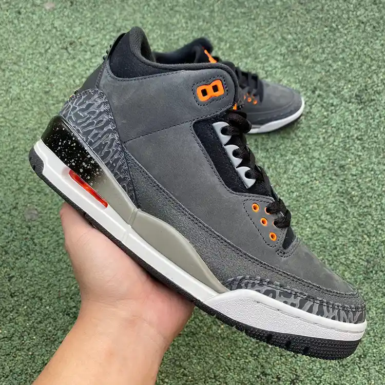 The Air Jordan 3 “Fear” brings a striking blend of modern design and classic Jordan heritage. This edition stands out with its deep grey and black colorway, complemented by subtle orange accents, embodying the intensity and determination that drives athletes to overcome their fears. The premium leather upper with the signature elephant print overlays adds both durability and style, making this pair a must-have for any Jordan enthusiast or sneaker collector.