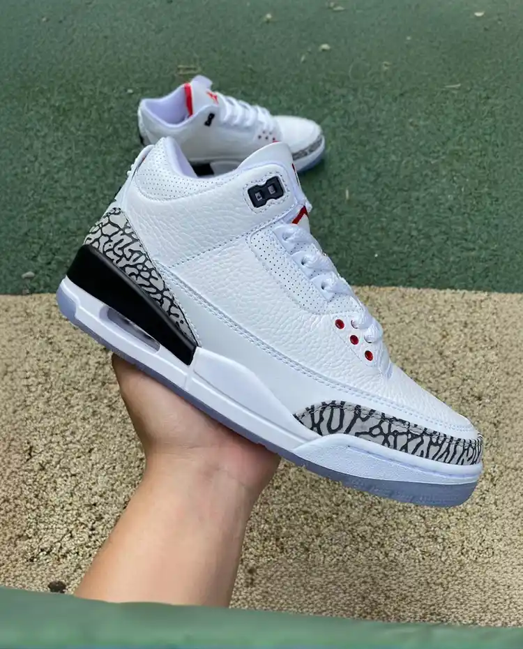 - Design Details: The sneaker retains classic Air Jordan 3 elements, including perforated leather panels, the visible Air-Sole unit, and the iconic Jumpman logo in blue on the tongue.