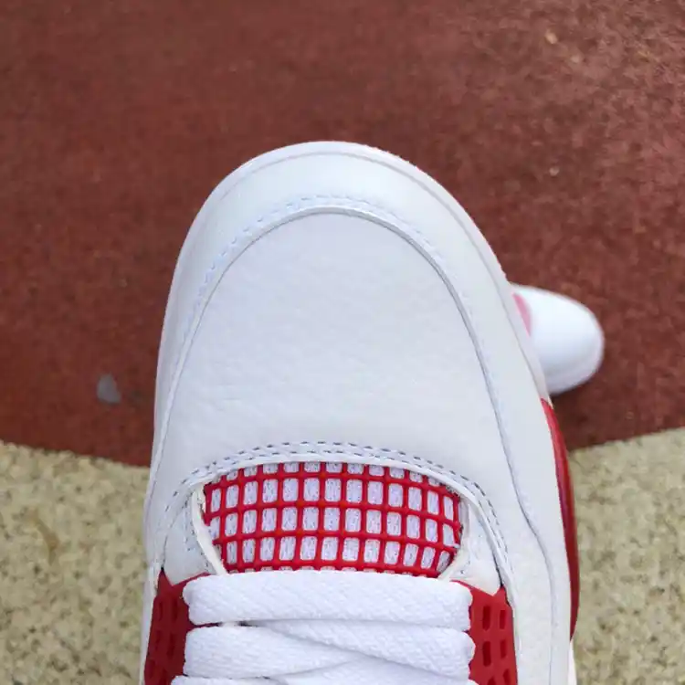 - Iconic Design: The Air Jordan 4 “Alternate ’89” features a sleek white leather upper with bold red accents, creating a clean and striking look. The design is inspired by a player-exclusive colorway that Michael Jordan might have worn back in 1989.