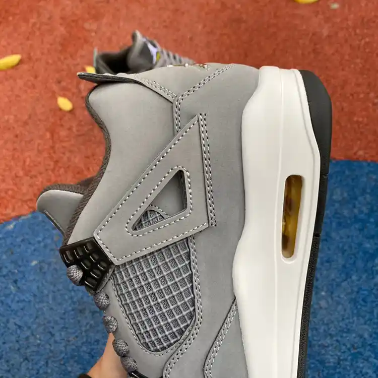 - Premium Suede Upper: The “Cool Grey” AJ4 features a luxurious grey suede upper that exudes a sleek and refined look. The suede material is not only visually appealing but also provides a soft and comfortable fit, ensuring these sneakers feel as good as they look.