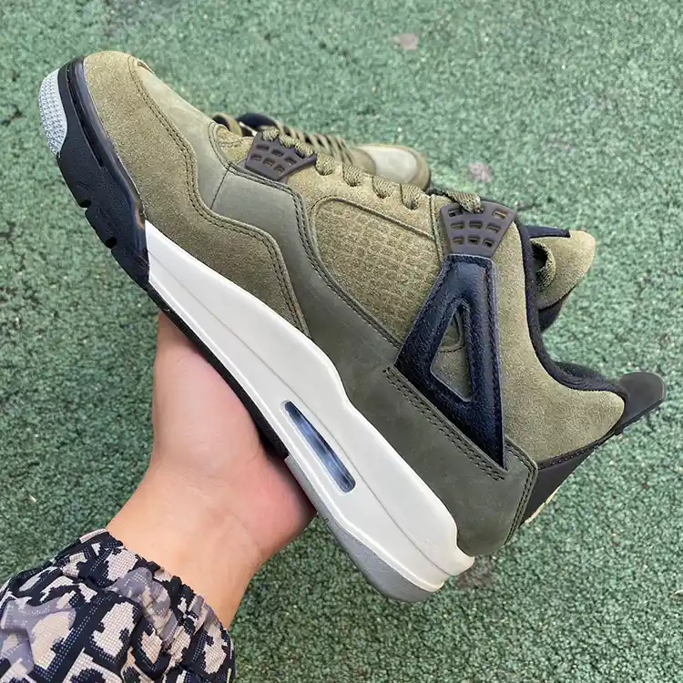 - Sophisticated Colorway: The Air Jordan 4 “Olive” features a sleek and refined olive green upper, accented with subtle black and white details. This versatile color combination delivers a modern and stylish look that complements any outfit.