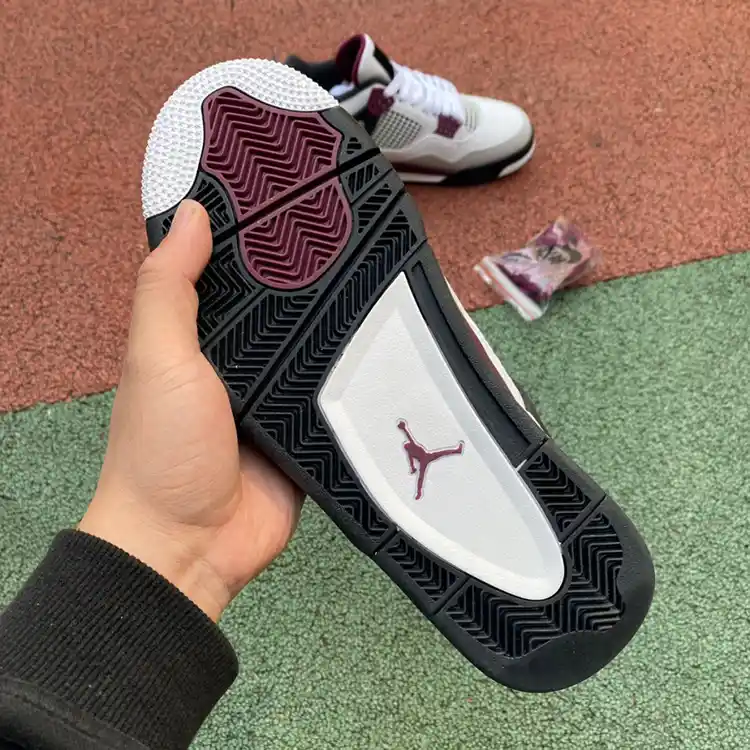 - Exclusive PSG Collaboration: This edition of the Air Jordan 4 is a special collaboration with Paris Saint-Germain, featuring the club’s crest on the heel and the team’s signature burgundy accents. The partnership brings a unique blend of Jordan’s basketball heritage and PSG’s football legacy.