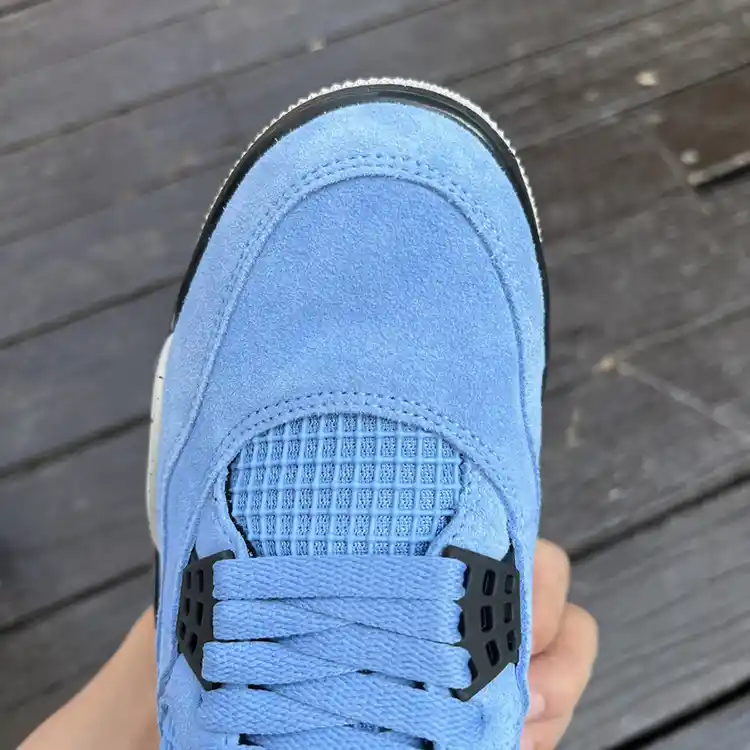 - Signature University Blue: The upper is dressed in a striking university blue, paying homage to the Tar Heels. This color, synonymous with UNC, brings a fresh, yet nostalgic vibe to the Air Jordan 4, making it a standout in any sneaker collection.
