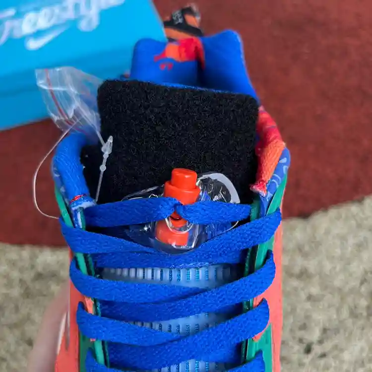 - Unique Design: The upper is crafted in a striking mix of deep blue and electric orange, with intricate detailing that tells the designer’s personal story. From inspirational messages to custom graphics, every element of the shoe is a reflection of the designer’s journey.