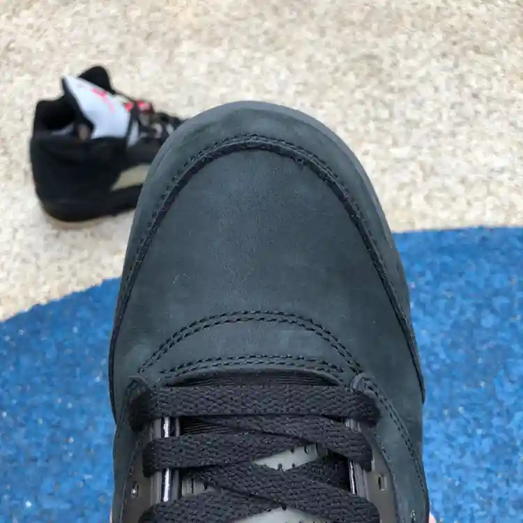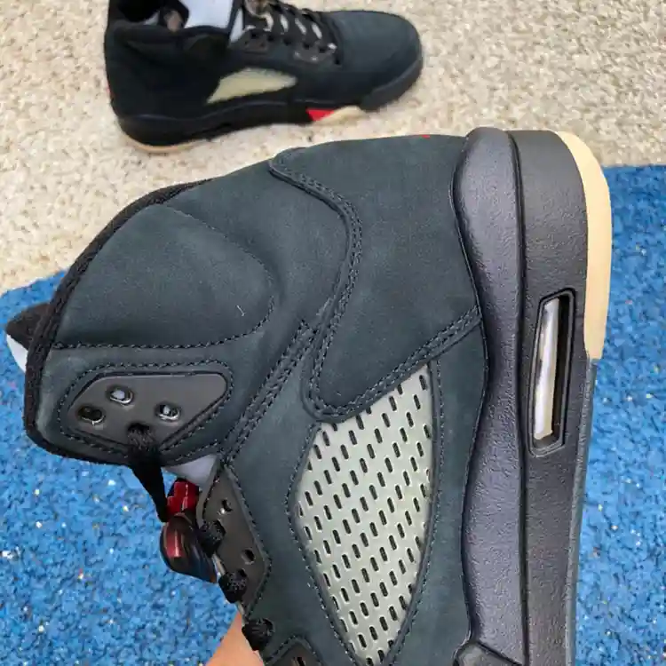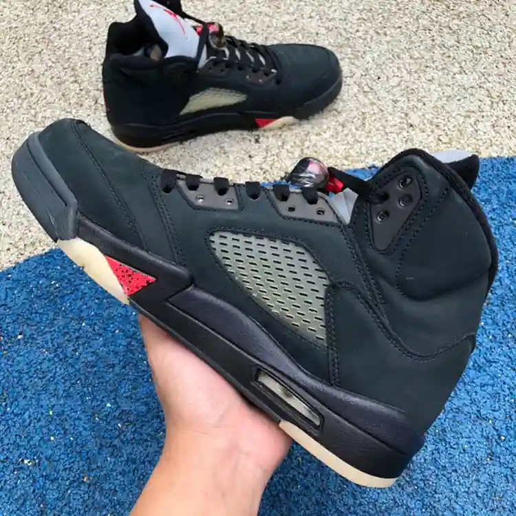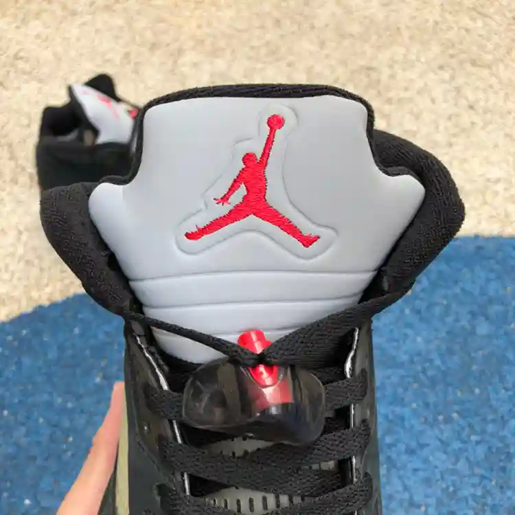 • Colorway: A black base with striking Fire Red accents gives the shoe a bold and iconic look, reminiscent of the original Air Jordan 5 colorways.