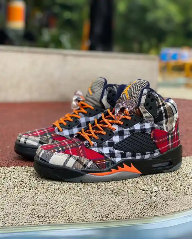 The Air Jordan 5 “Plaid” is perfect for those who appreciate a blend of classic Jordan style with a modern, fashion-forward design. The combination of black leather with a bold red plaid pattern creates a standout look that’s both unique and versatile. Ideal for both sneaker enthusiasts and those looking to make a statement, this shoe offers a mix of style, comfort, and the high-performance features you expect from the AJ5.