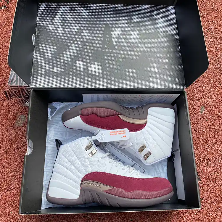 The AMM x Air Jordan 12 “White/Crimson” stands out with its luxurious white leather upper and bold crimson accents, offering a sophisticated look combined with high-performance features. The advanced Zoom Air cushioning ensures comfort, while the carbon fiber shank plate provides essential support. This limited-edition collaboration from A Ma Maniére and Nike delivers an exclusive blend of style and performance, perfect for discerning sneaker enthusiasts.