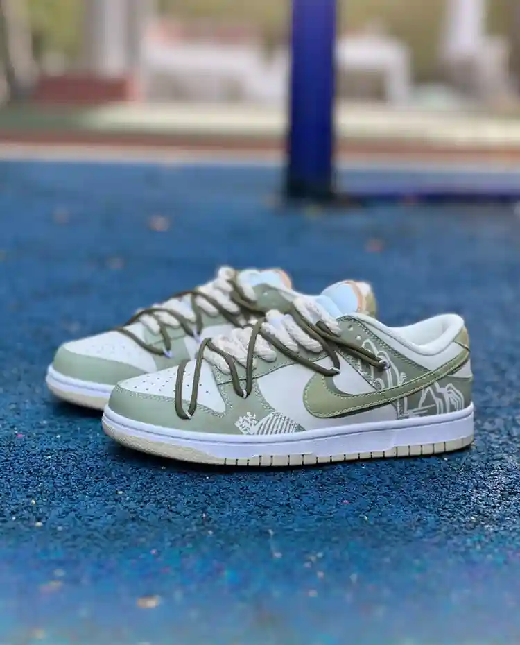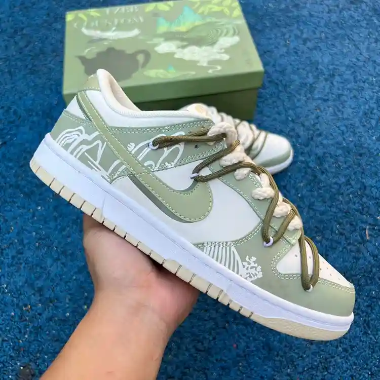 Product Description: The Nike Dunk Low “Double Swoosh Tea Set” in White/Green is a unique and stylish sneaker inspired by the elegance of traditional Chinese tea culture. This special edition release features a harmonious blend of white and green tones, reminiscent of fine Longjing tea leaves, creating a timeless look that stands out with its subtle yet distinctive design. The double Swoosh detailing adds a modern twist to this classic silhouette, making it a perfect addition to any sneaker enthusiast’s collection.