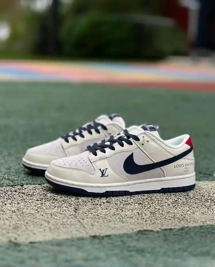 Why You’ll Love Them: The Nike Dunk x Louis Vuitton White/Grey/Blue is more than just a sneaker—it’s a piece of wearable art. This collaboration combines the best of both worlds, offering a design that is both luxurious and street-ready. Whether you’re a sneakerhead, a fashion aficionado, or simply someone who appreciates fine craftsmanship, this pair delivers on all fronts. Its versatile colorway ensures it pairs effortlessly with any outfit, while its premium materials and construction guarantee it will stand the test of time.