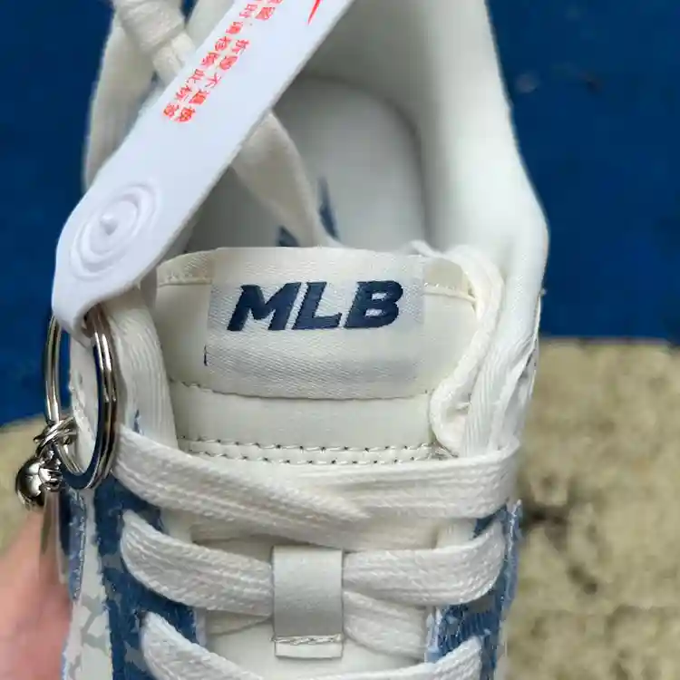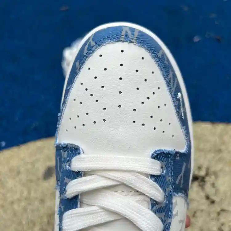 - Upper: The Nike Dunk x MLB New York Yankees features a premium white leather upper, complemented by contrasting navy blue accents that echo the Yankees’ team colors. The rich leather provides both durability and a luxurious feel, while the navy blue overlays and Swoosh add a sporty touch.
