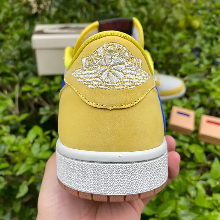 • Comfort and Performance: Designed with a padded collar, cushioned insole, and Nike Air technology, the Travis Scott x Air Jordan 1 Low “Canary” ensures superior comfort and support. The durable rubber outsole provides excellent traction for everyday wear.